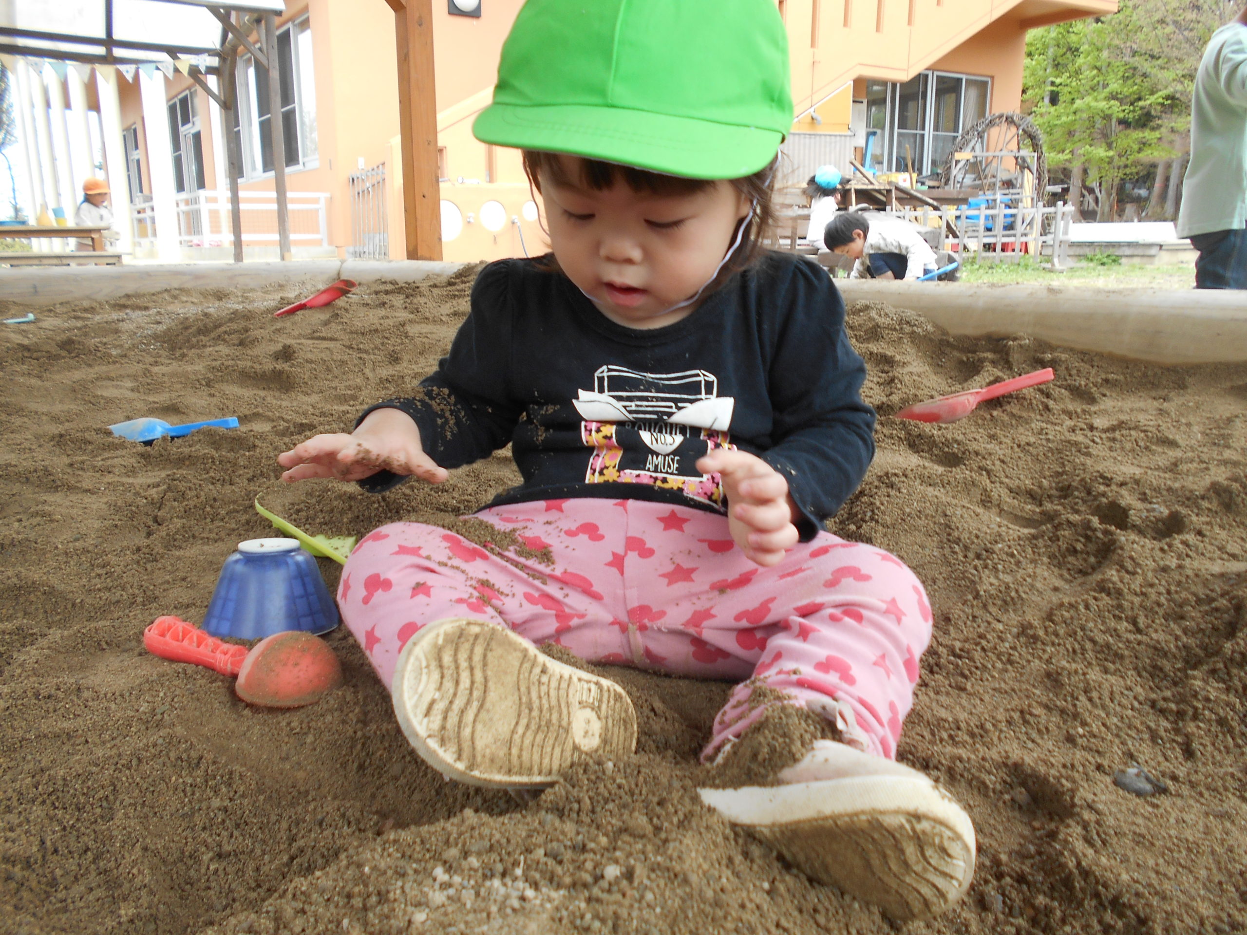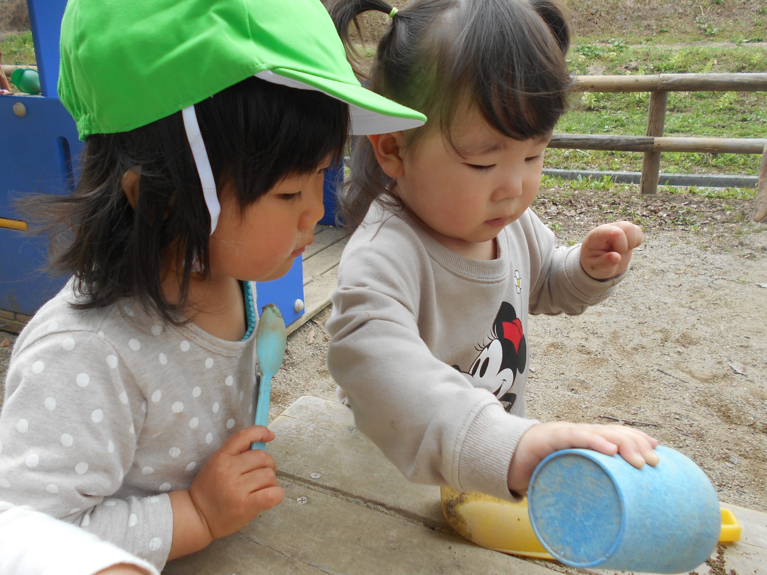 コップの中の砂をテーブルに広げたり…。