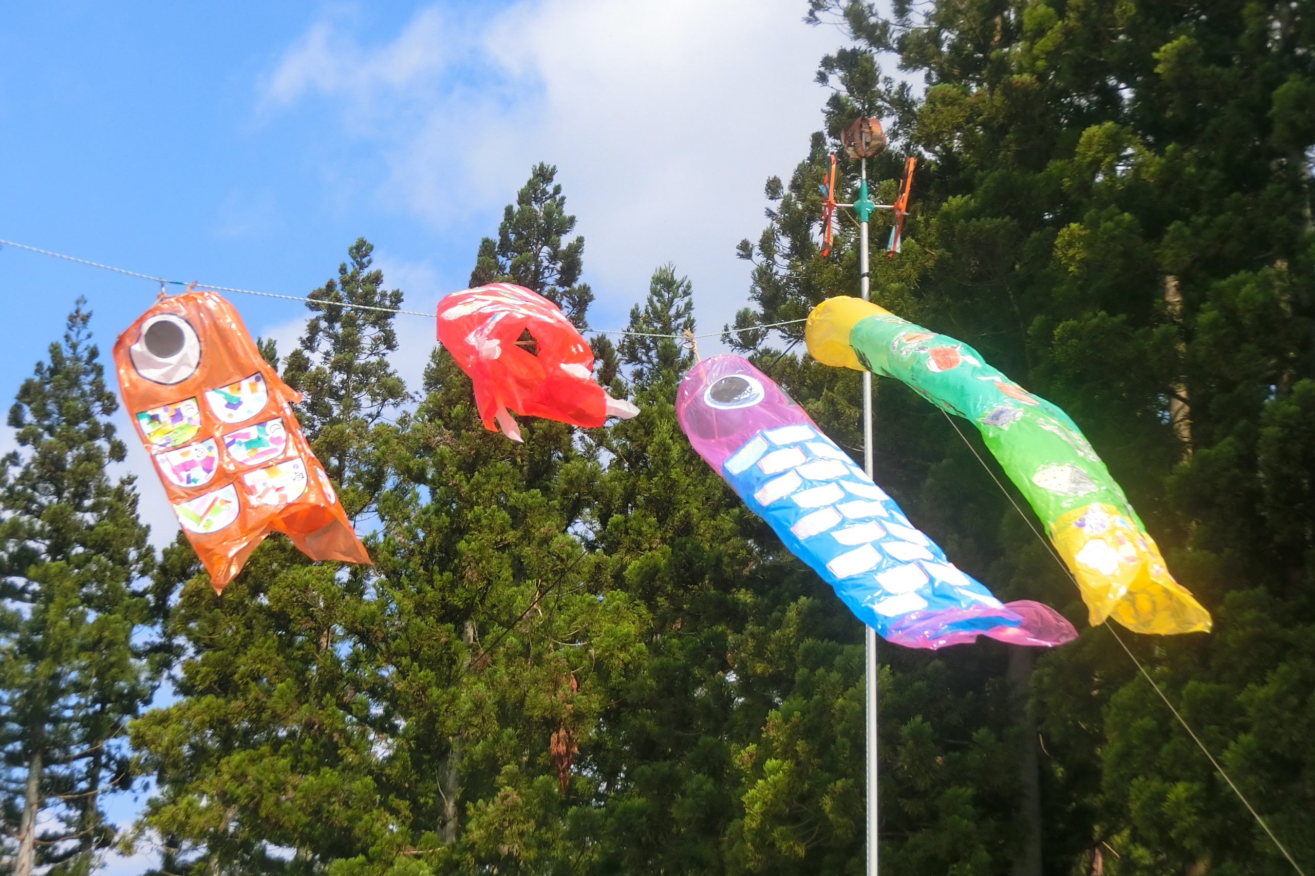 自分たちで工夫を凝らして作ったこいのぼり。