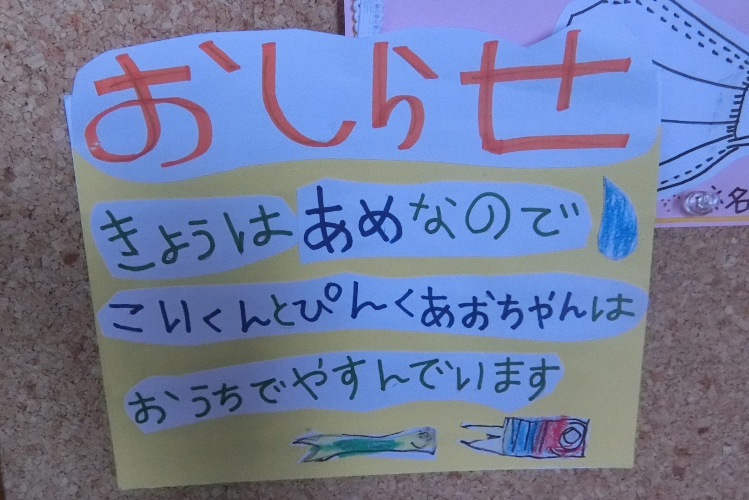 こんな風に玄関にお知らせを出すことにしました。