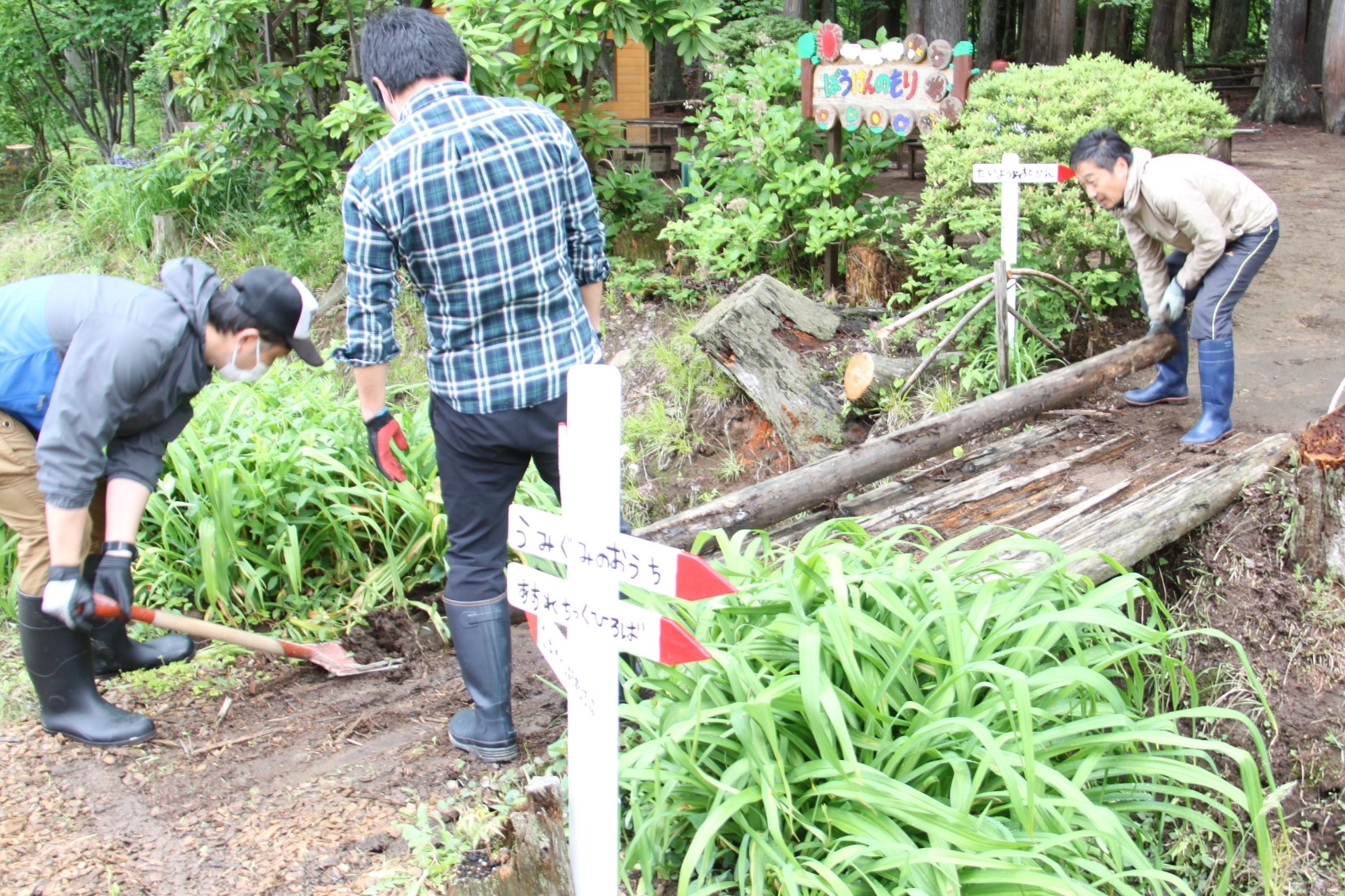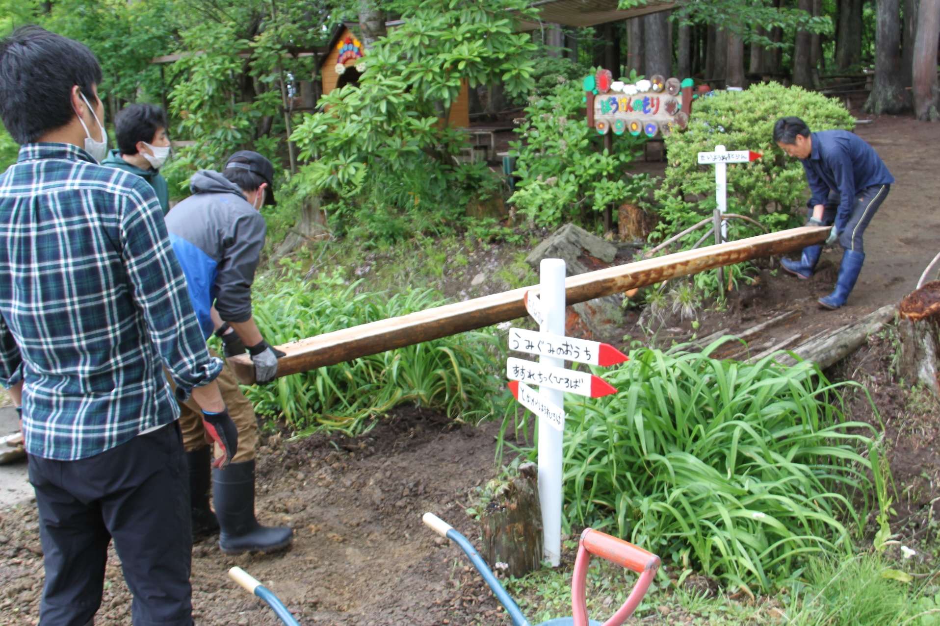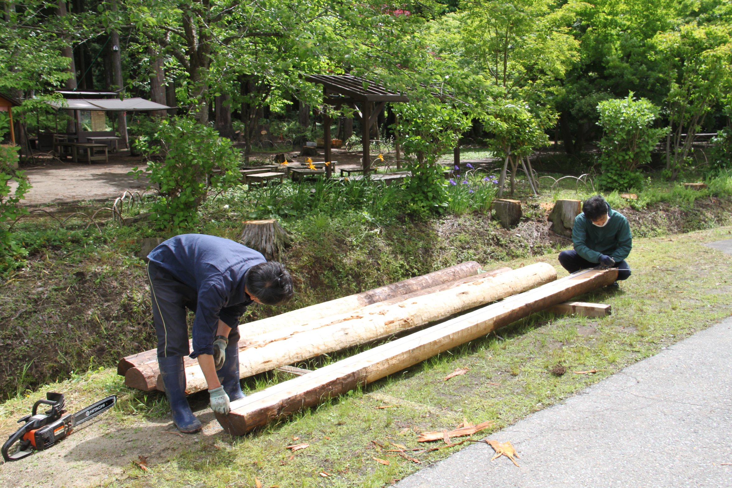 最初は古くなった丸太をうんこらしょどっこいしょと撤去。