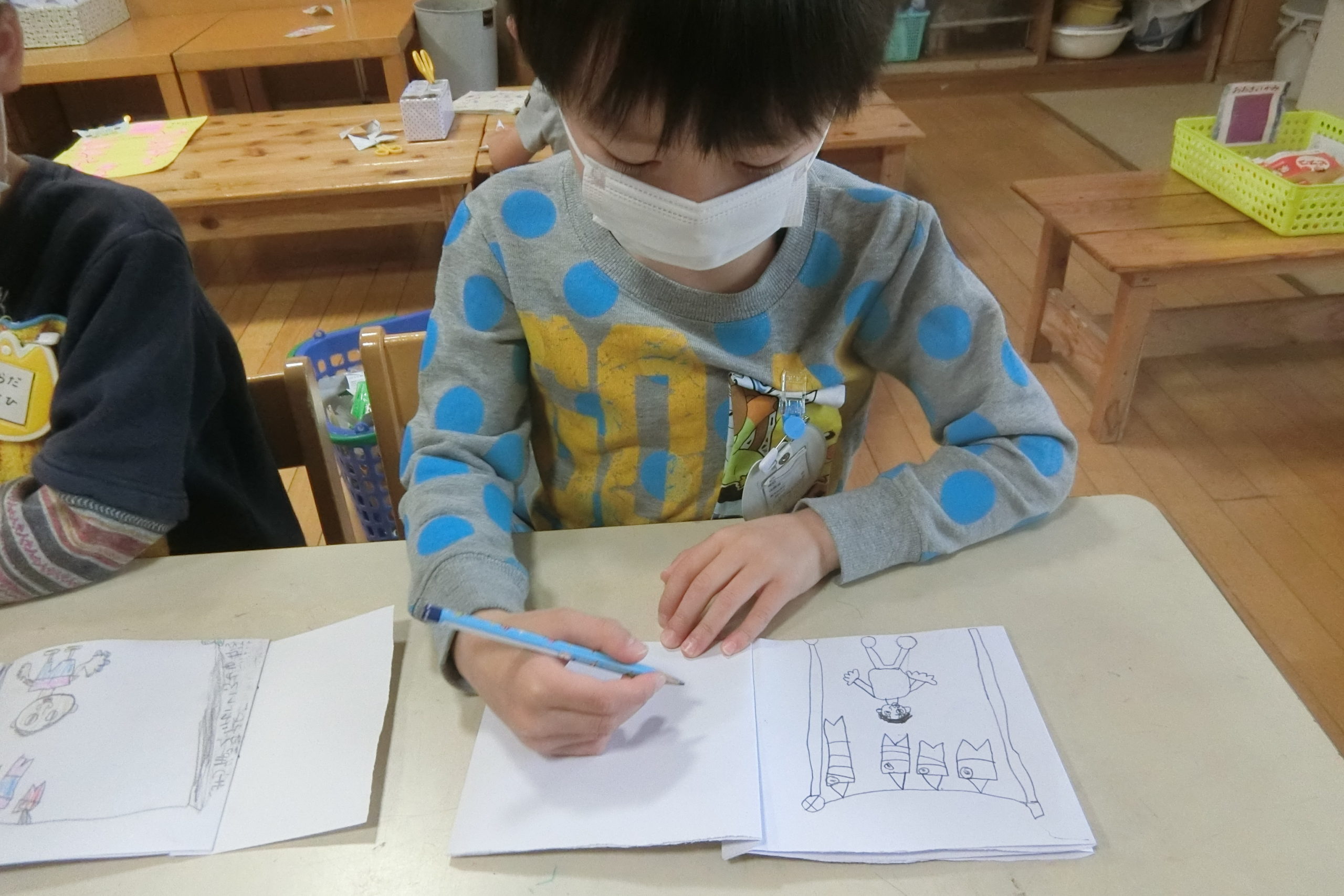 それがいつの間にかお話になってきて…。どんどん進むお話し~。