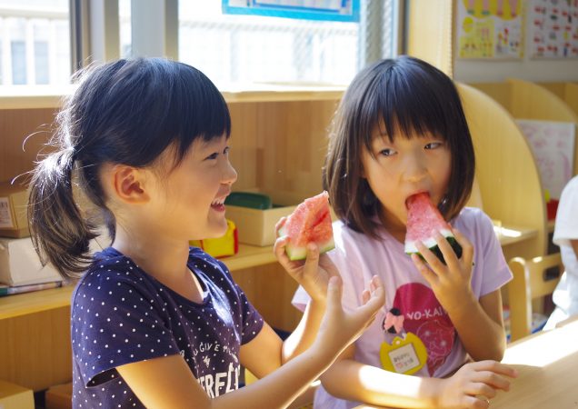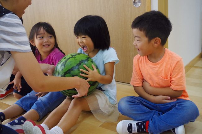 パリス錦町保育園のプール納会では、夏最後のお楽しみとしてスイカ割りをします!