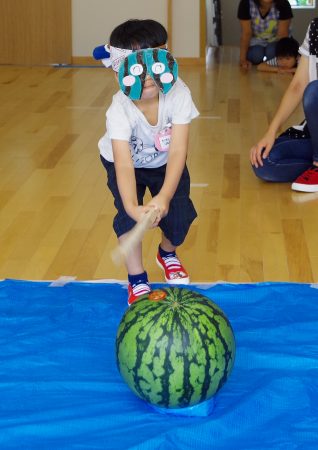 みんなで声を掛けスイカの位置を教えますが、やっぱり難しい!