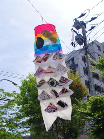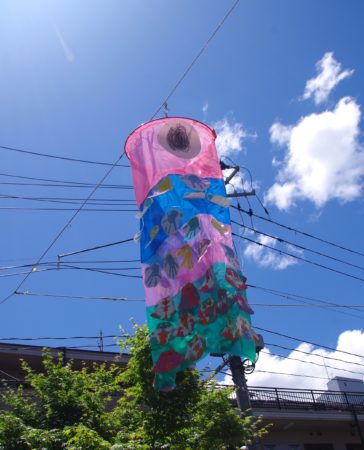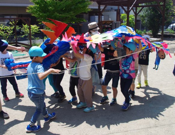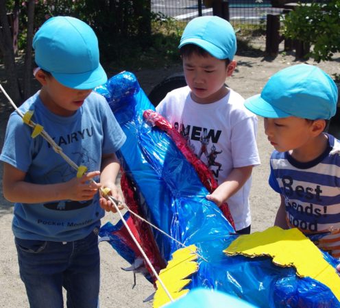子ども達がいろいろなイメージを持って工夫して作ったこいのぼり。