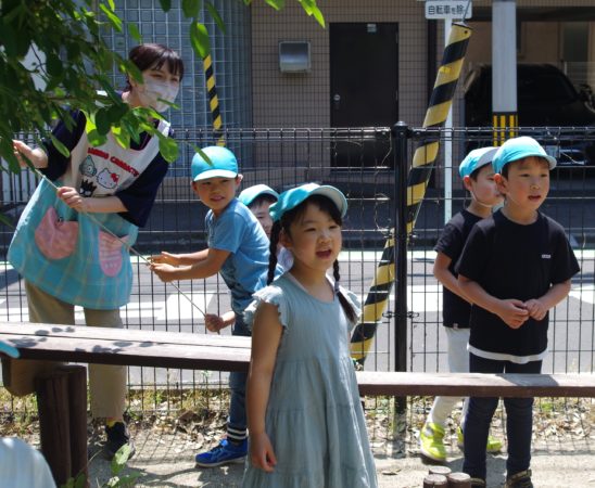 お当番さんが力一杯引っ張ります。