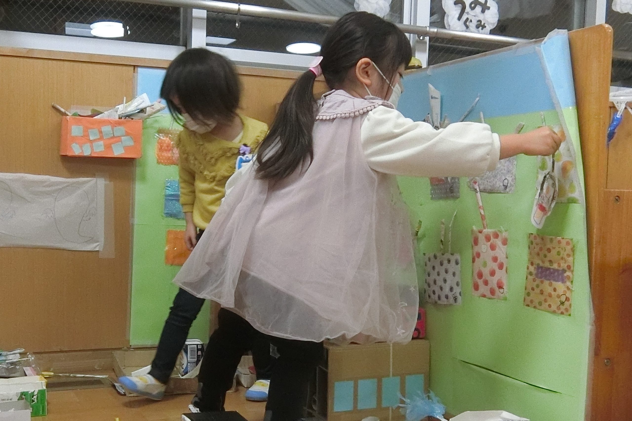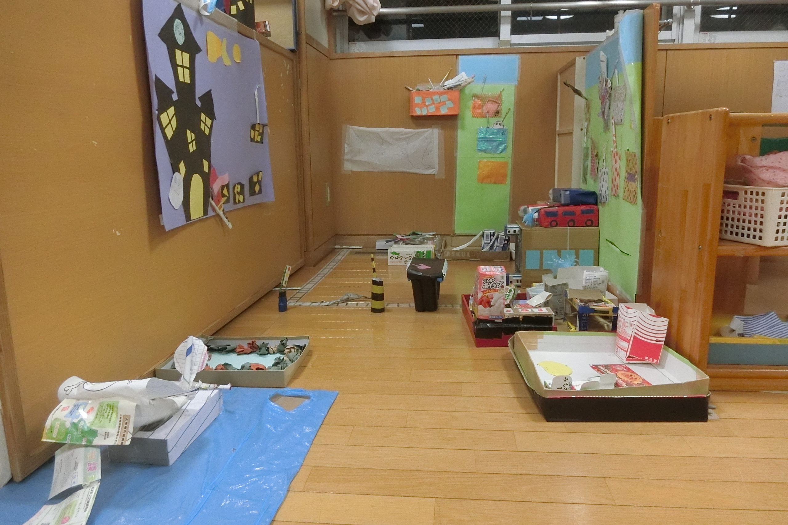お部屋がなんかぐちゃぐちゃになったね~。 と気付いたうみ組(3歳児)のふたり。