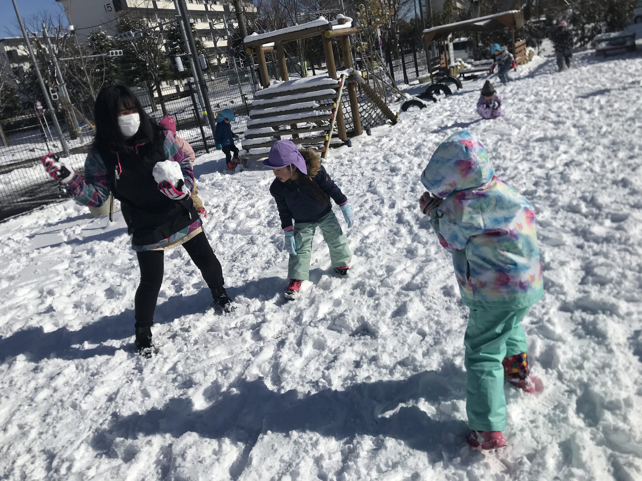 先生との雪合戦も白熱中!!