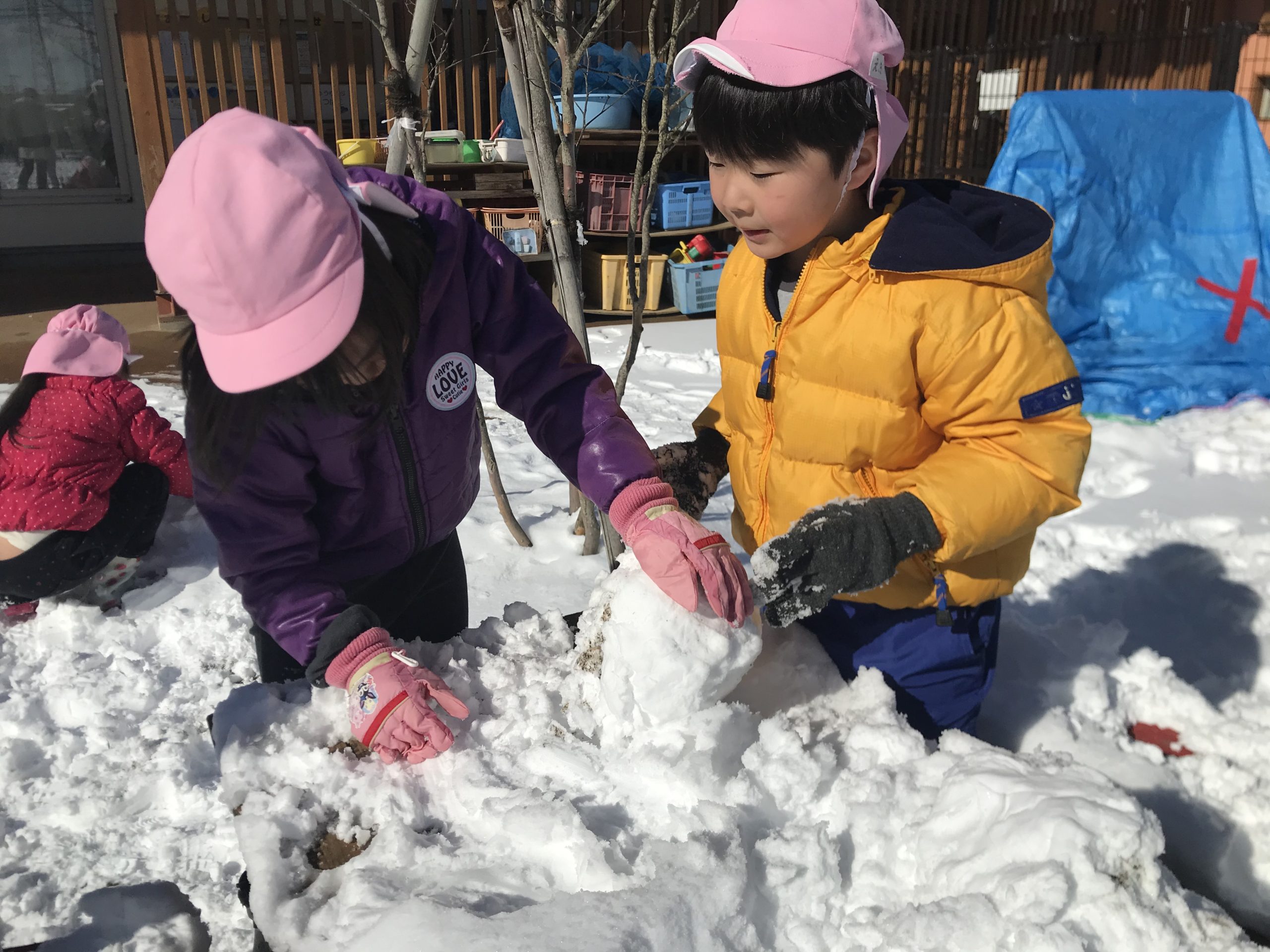 こっちでは、雪だるま製作☃