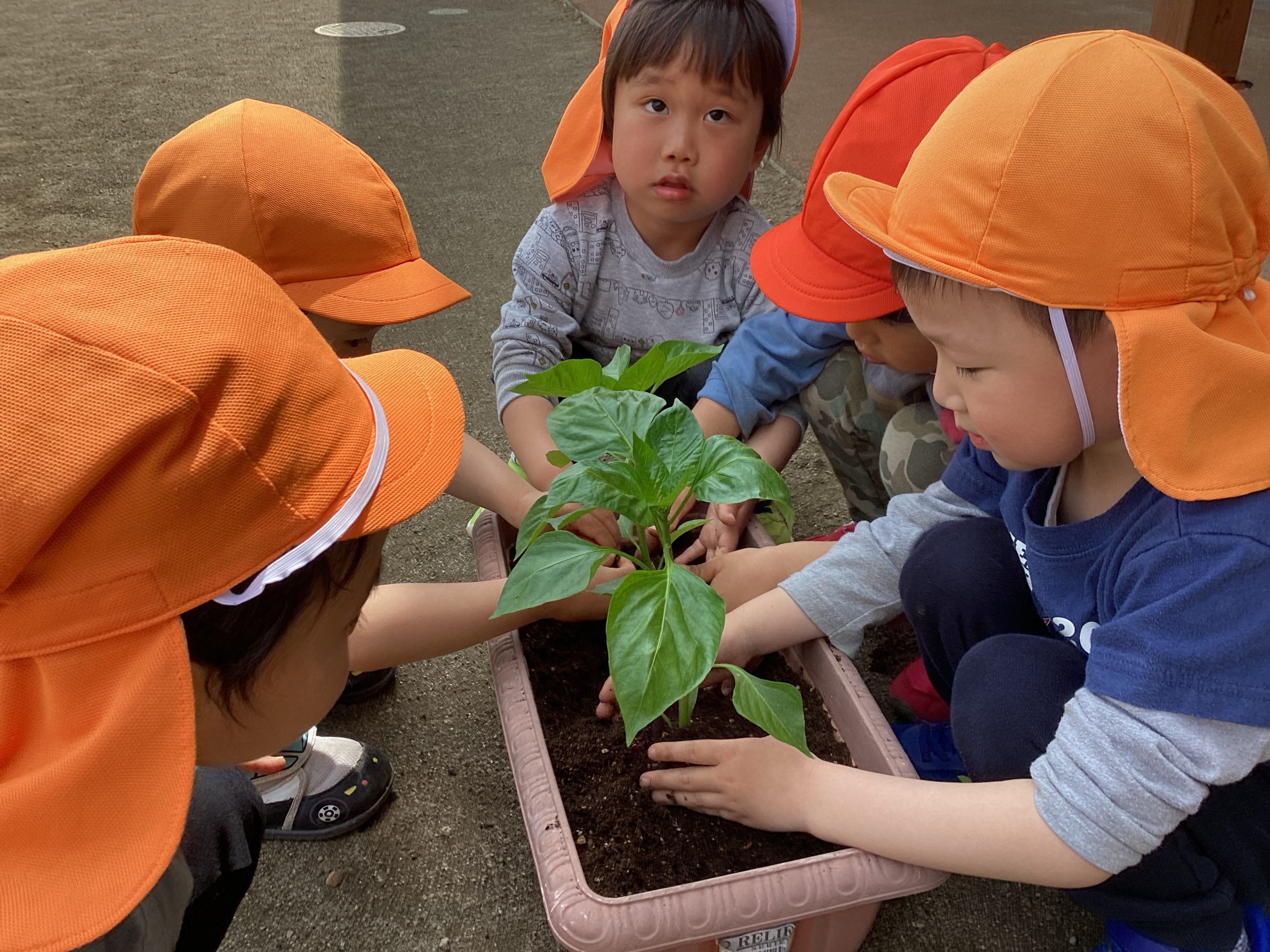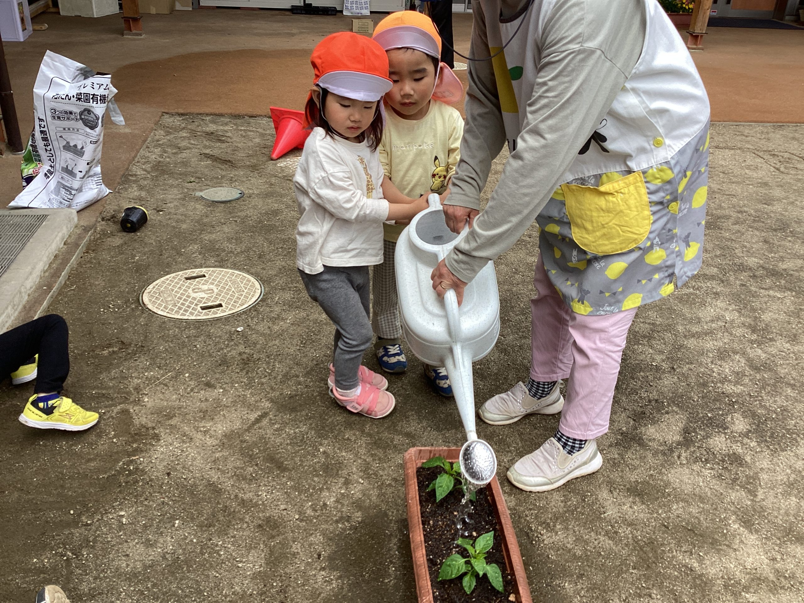ばら組さん(3歳児)は、黄色と緑色の2種類ピーマンの苗!