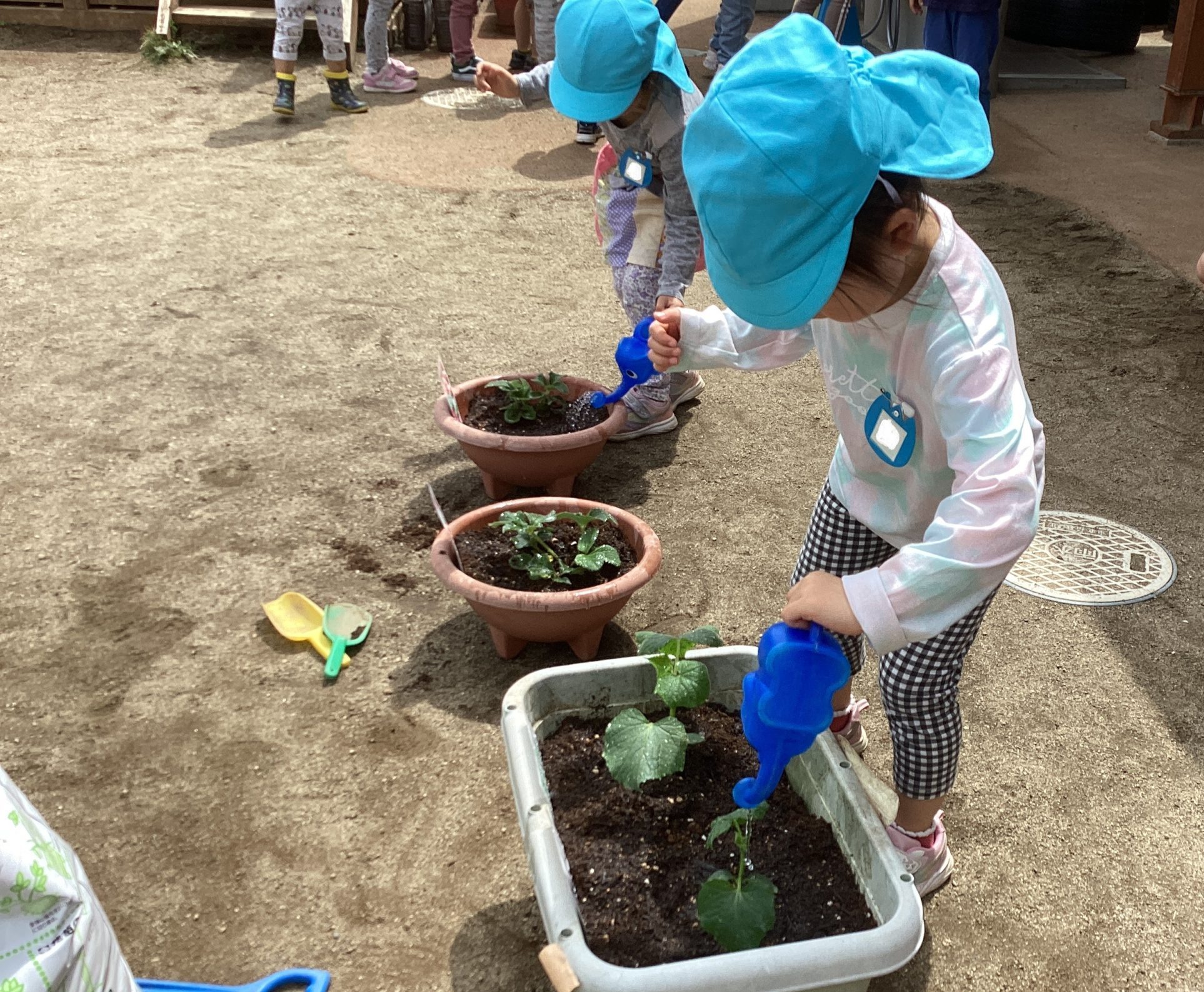 ひまわり組さんは、イチゴ🍓とキュウリ🥒の苗!
