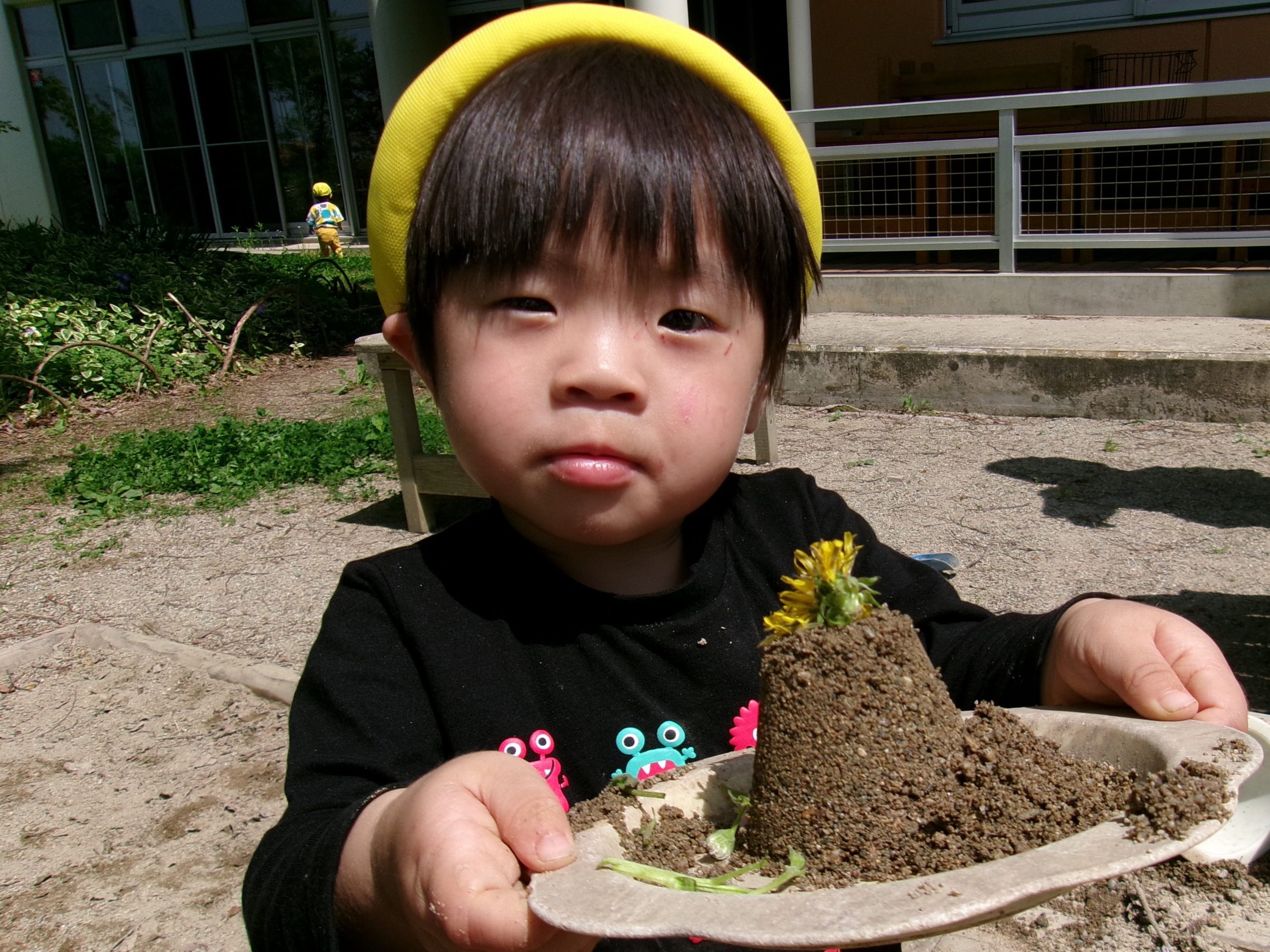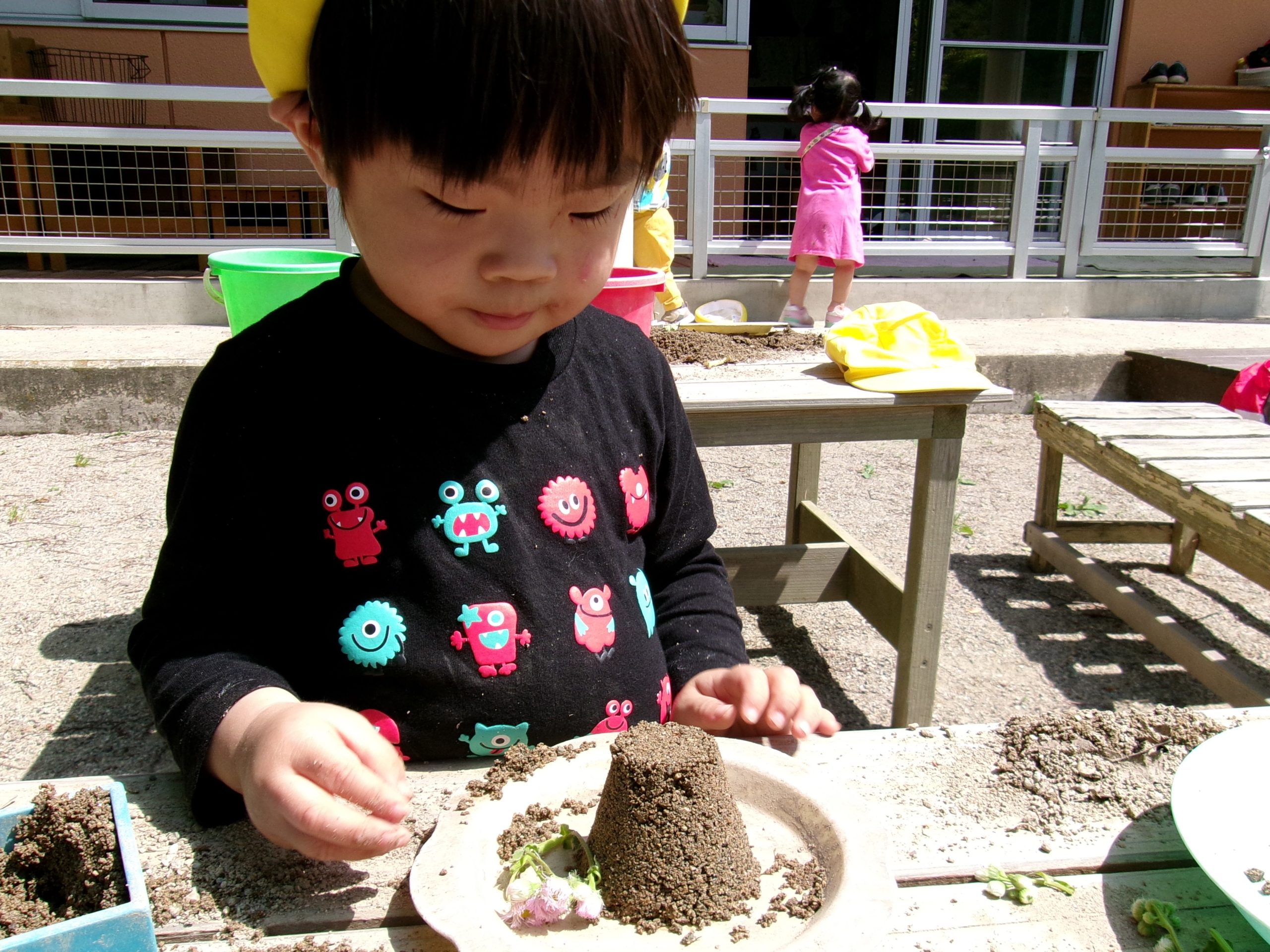 そして形を整えて・・・お花を飾り付けて…はいどうぞ~! おいしそうなケーキができました🎂