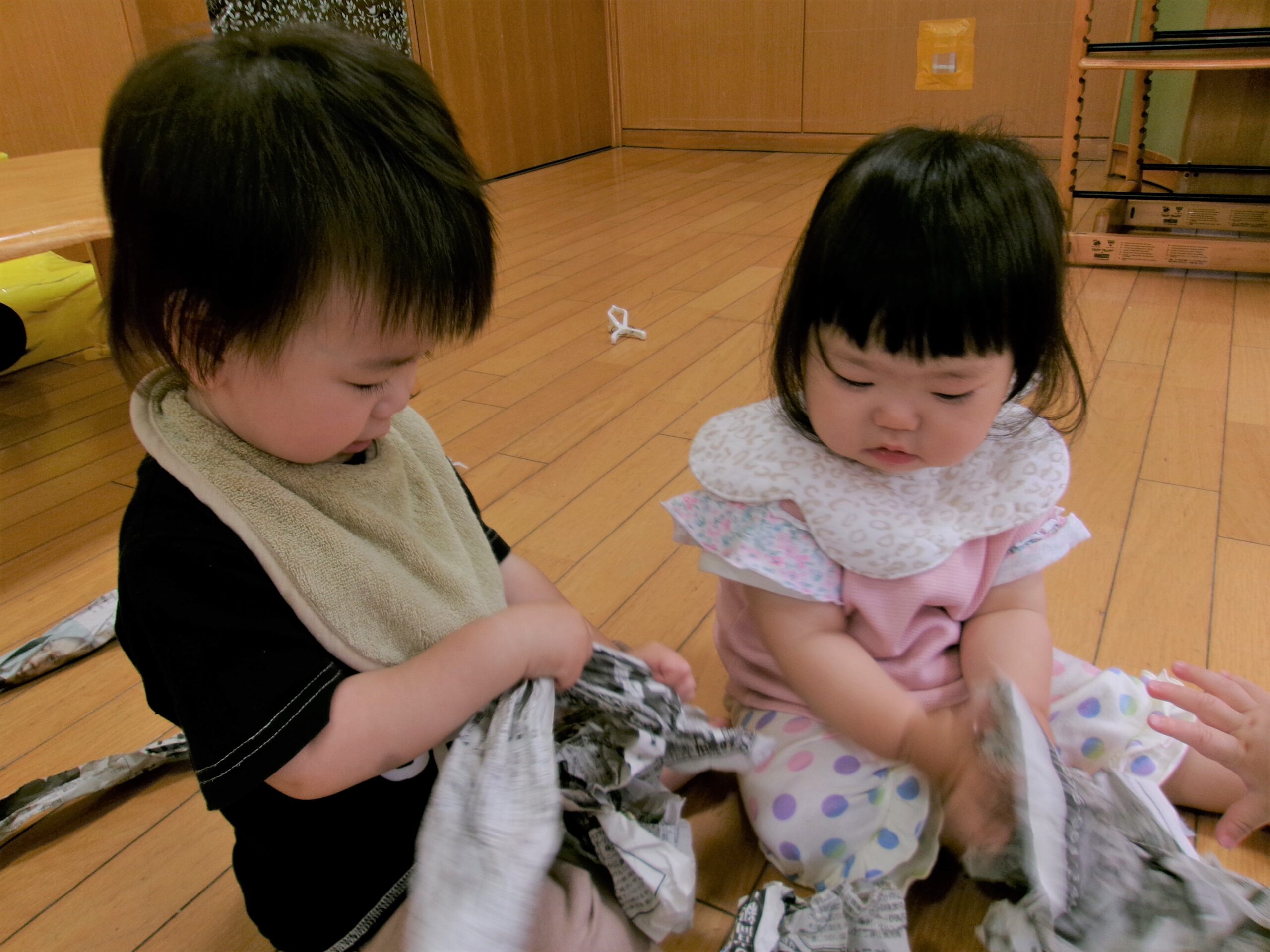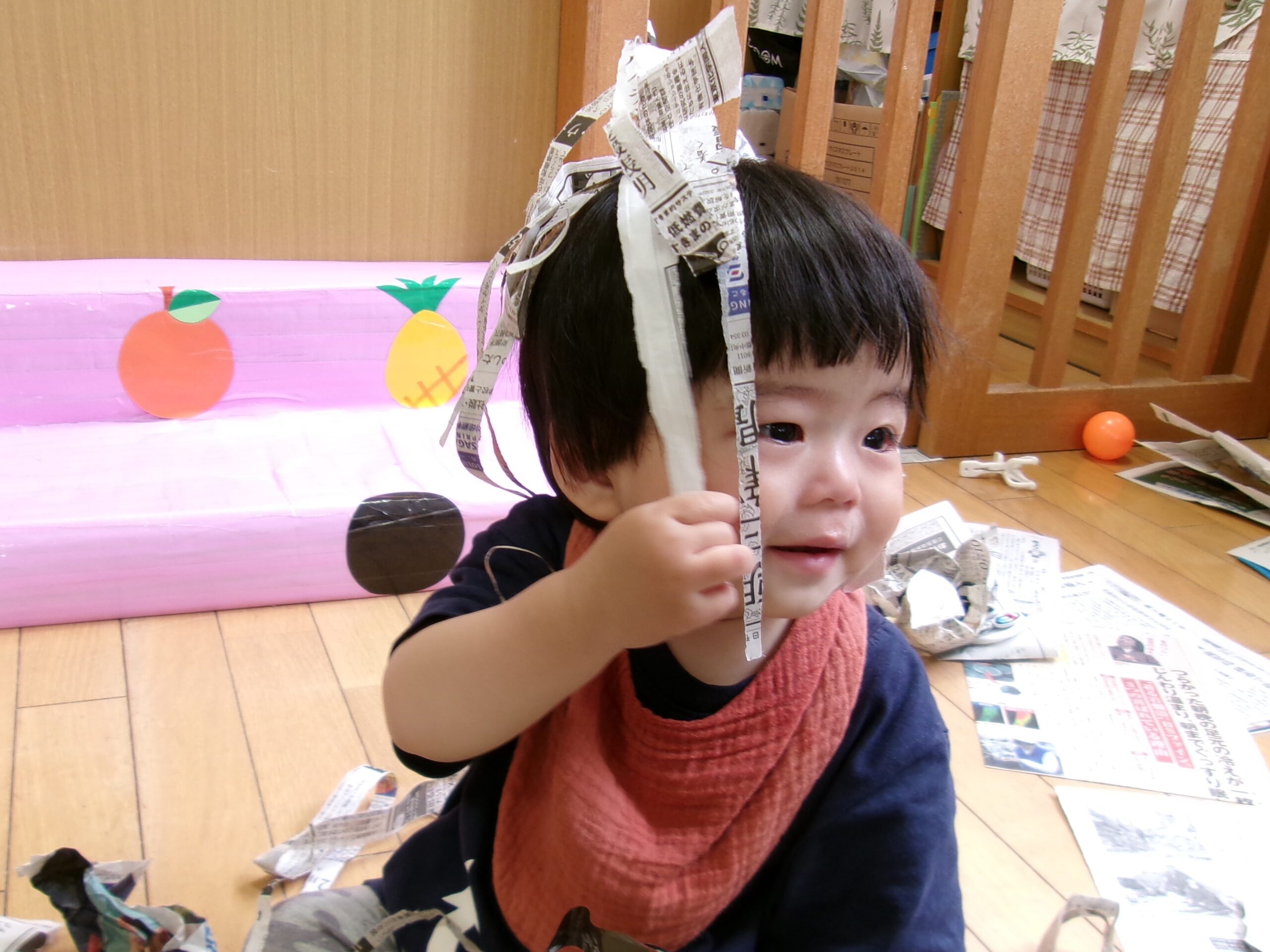 ゆめ組さん(1・0歳児)の新聞紙遊び ♪