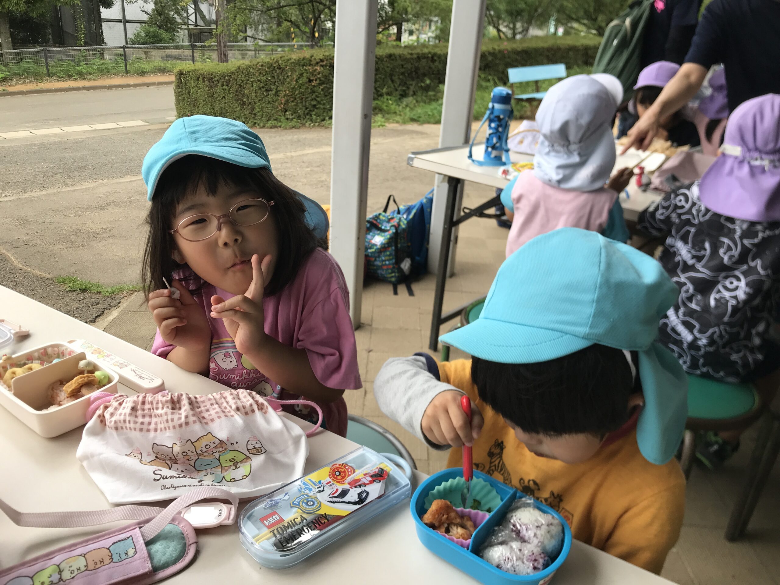 お弁当はみんなあっという間に食べてしまい、大満足!🍙🍖🐟