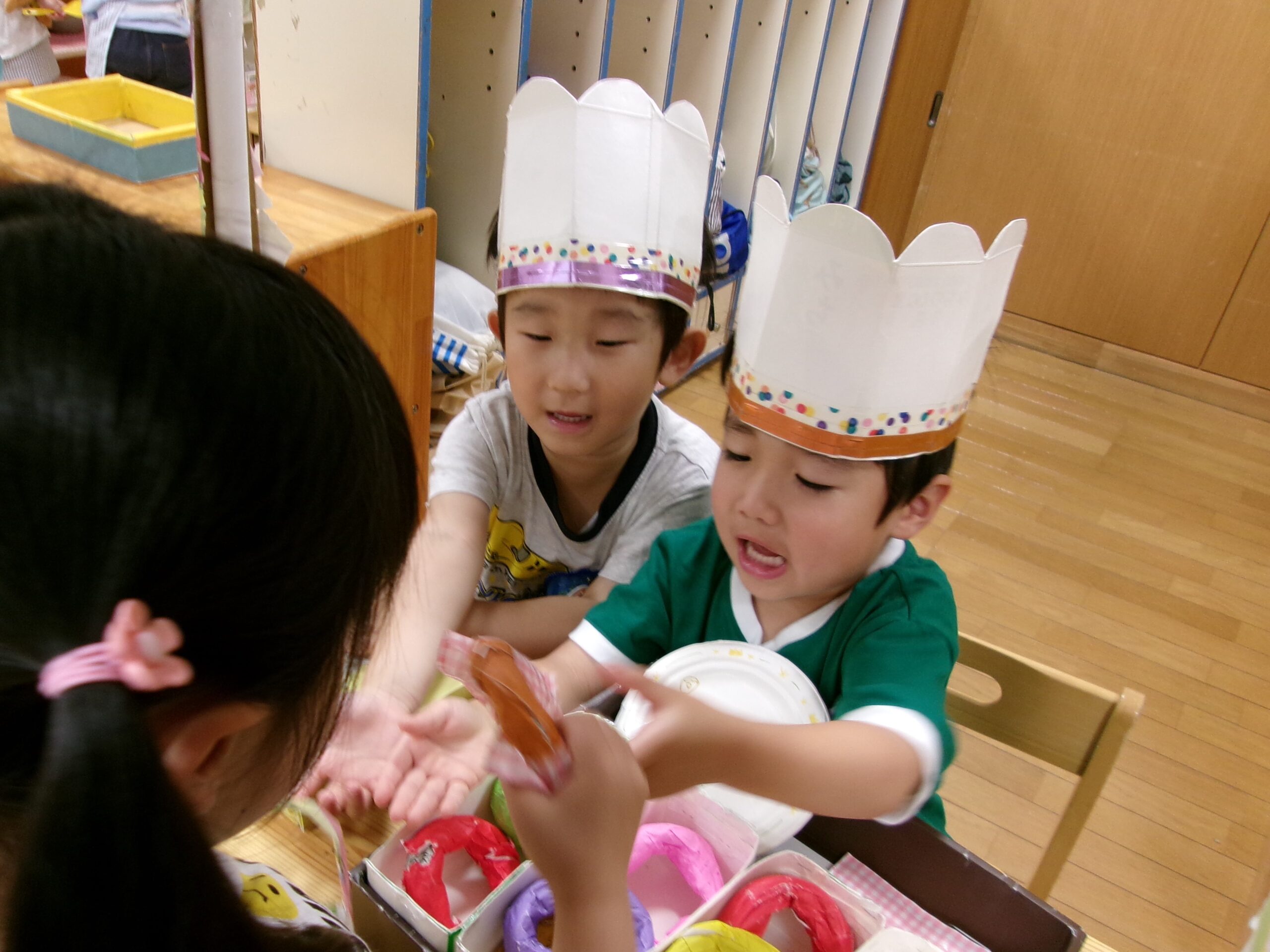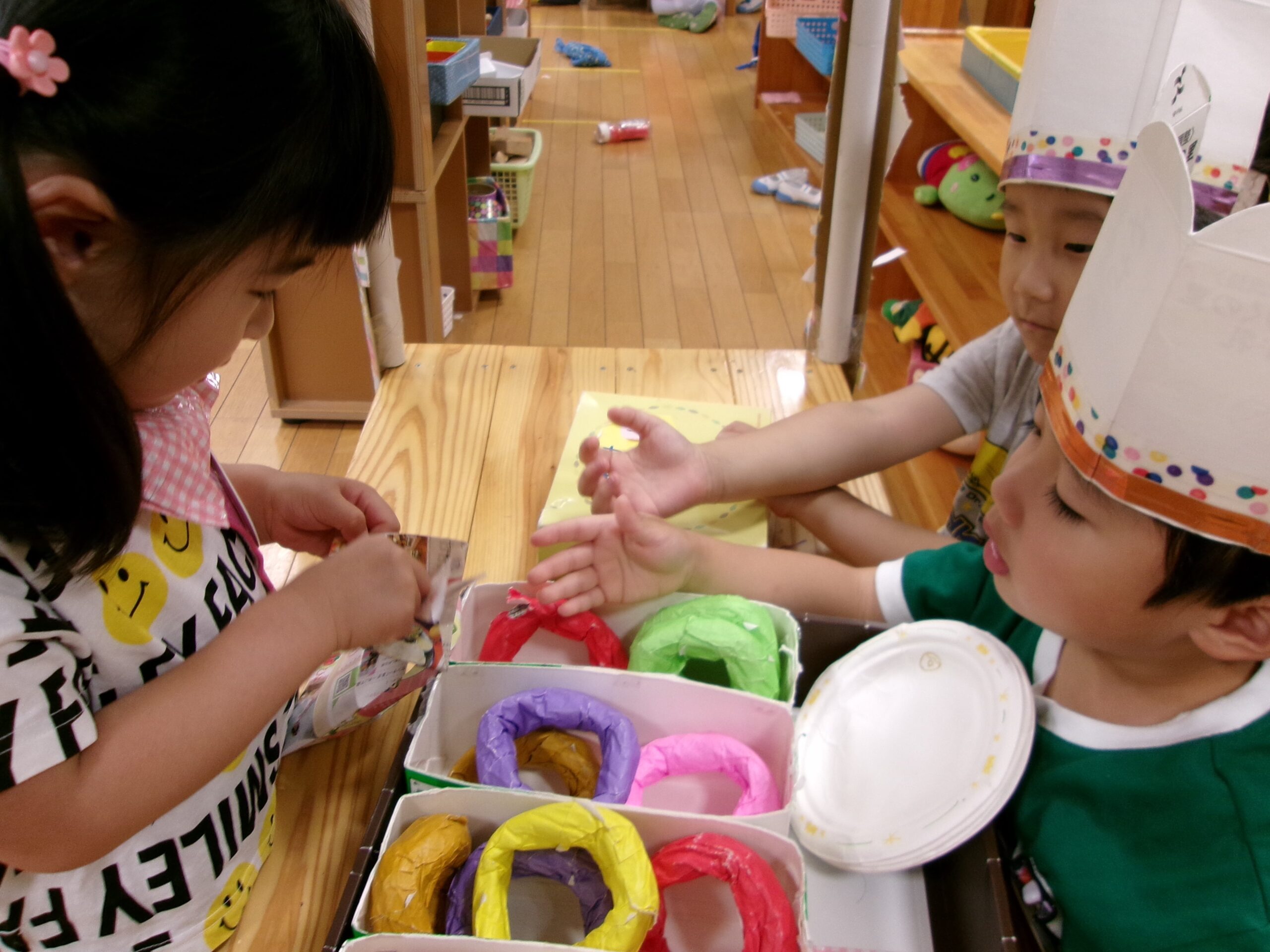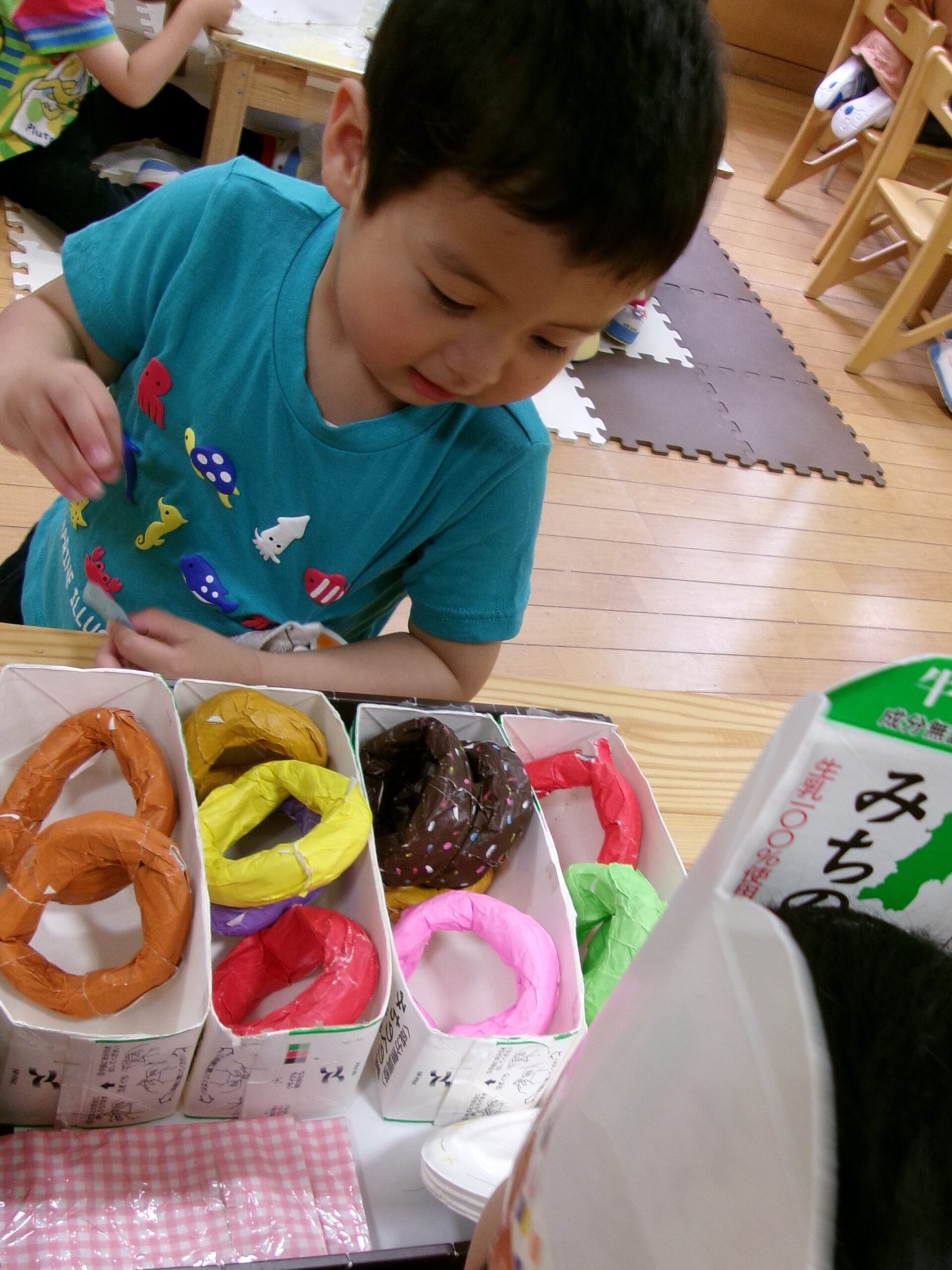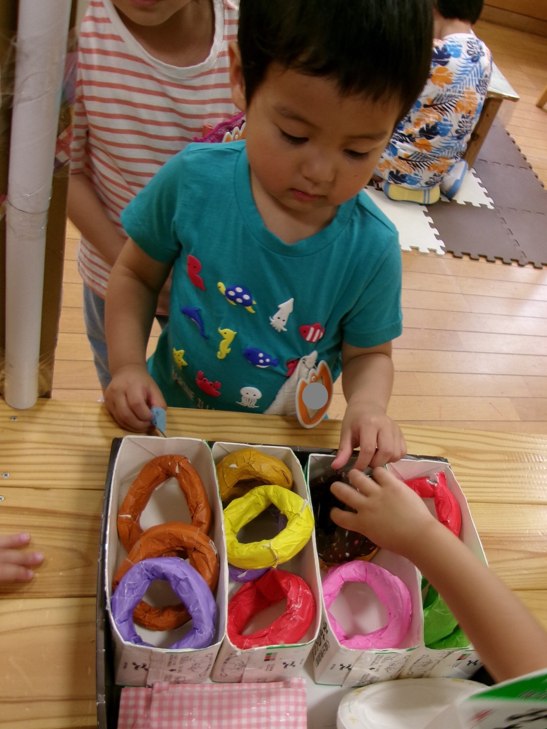 うみ組さん(3歳児)のドーナツ屋さんが開店しました♪