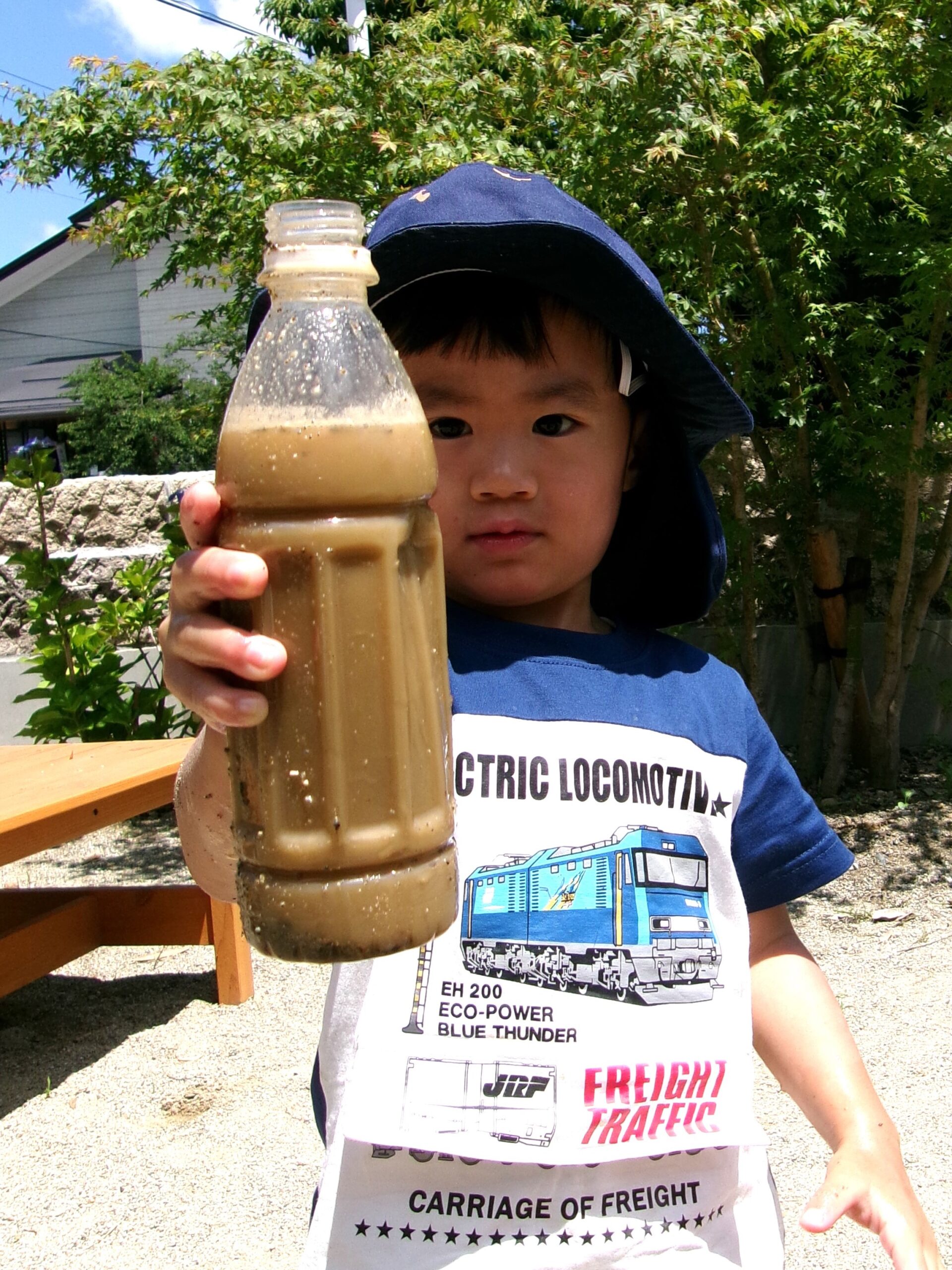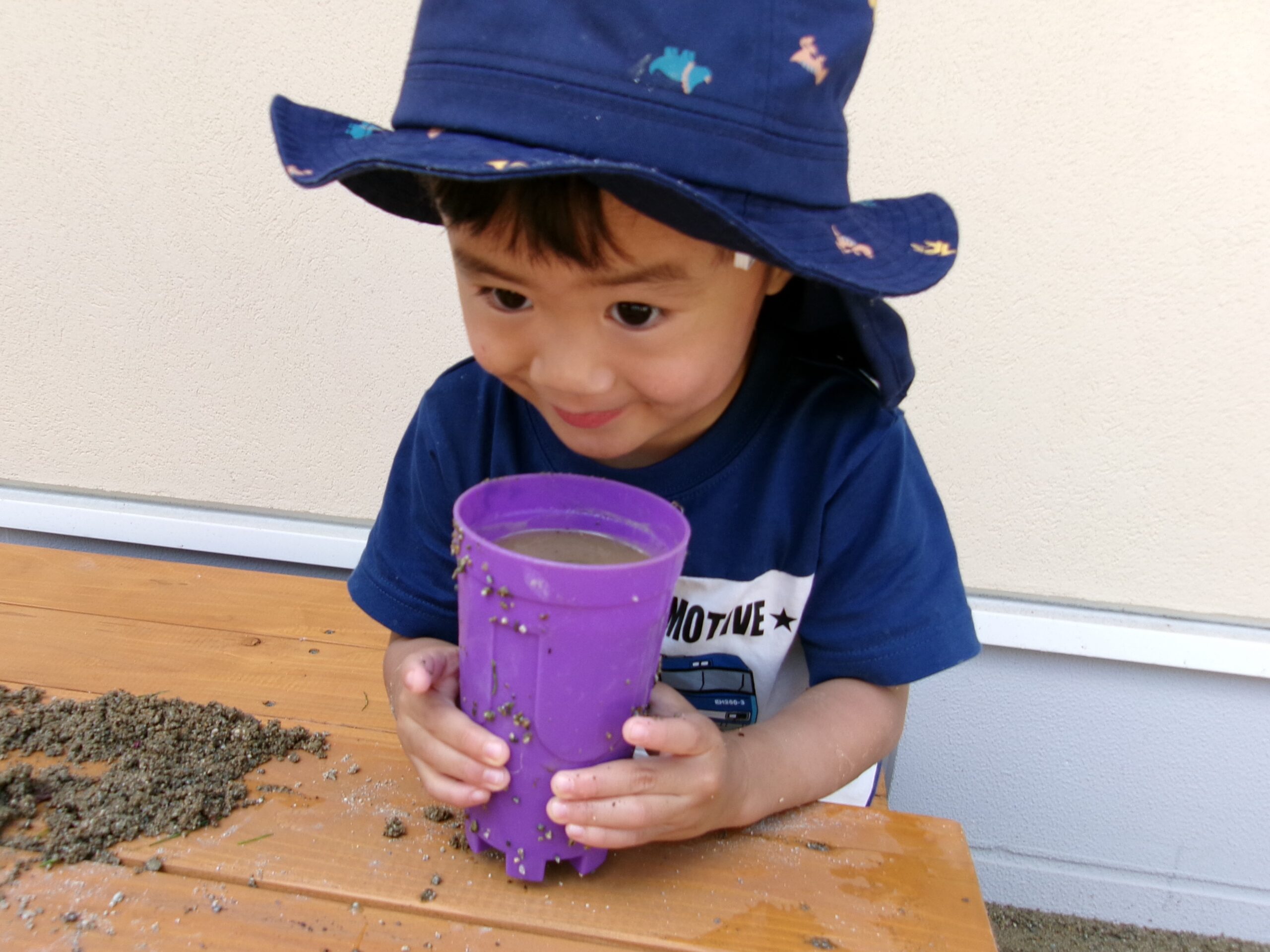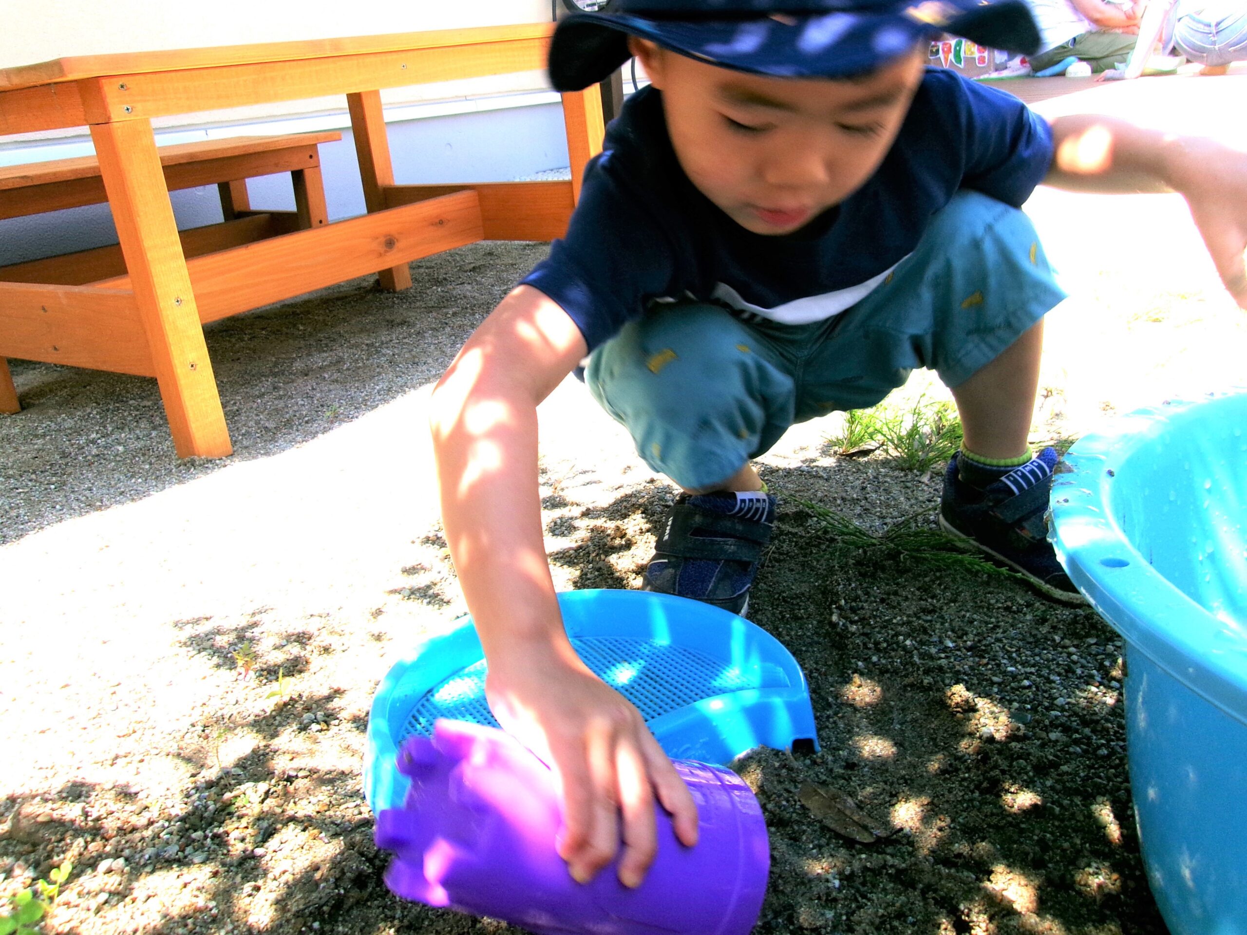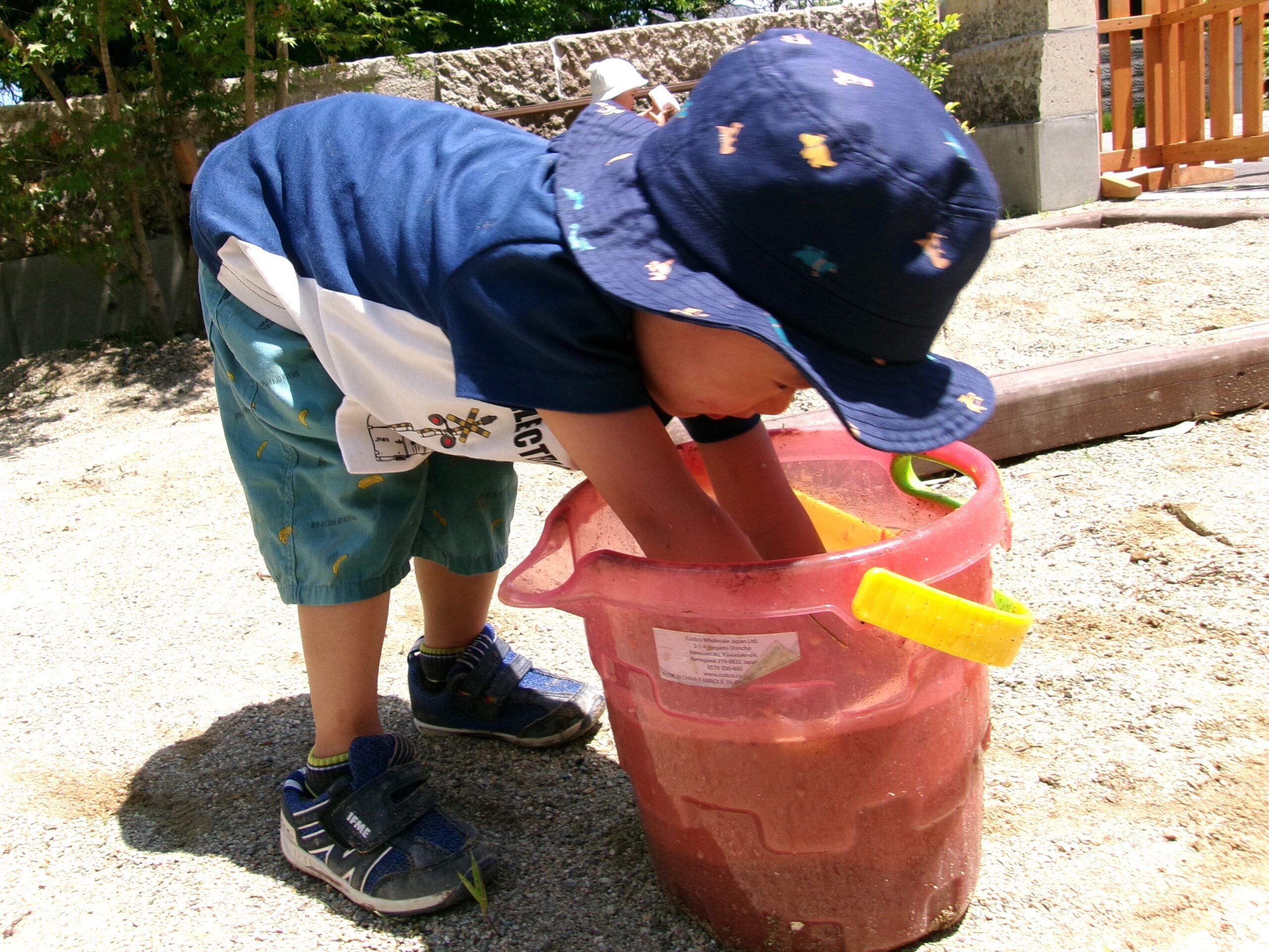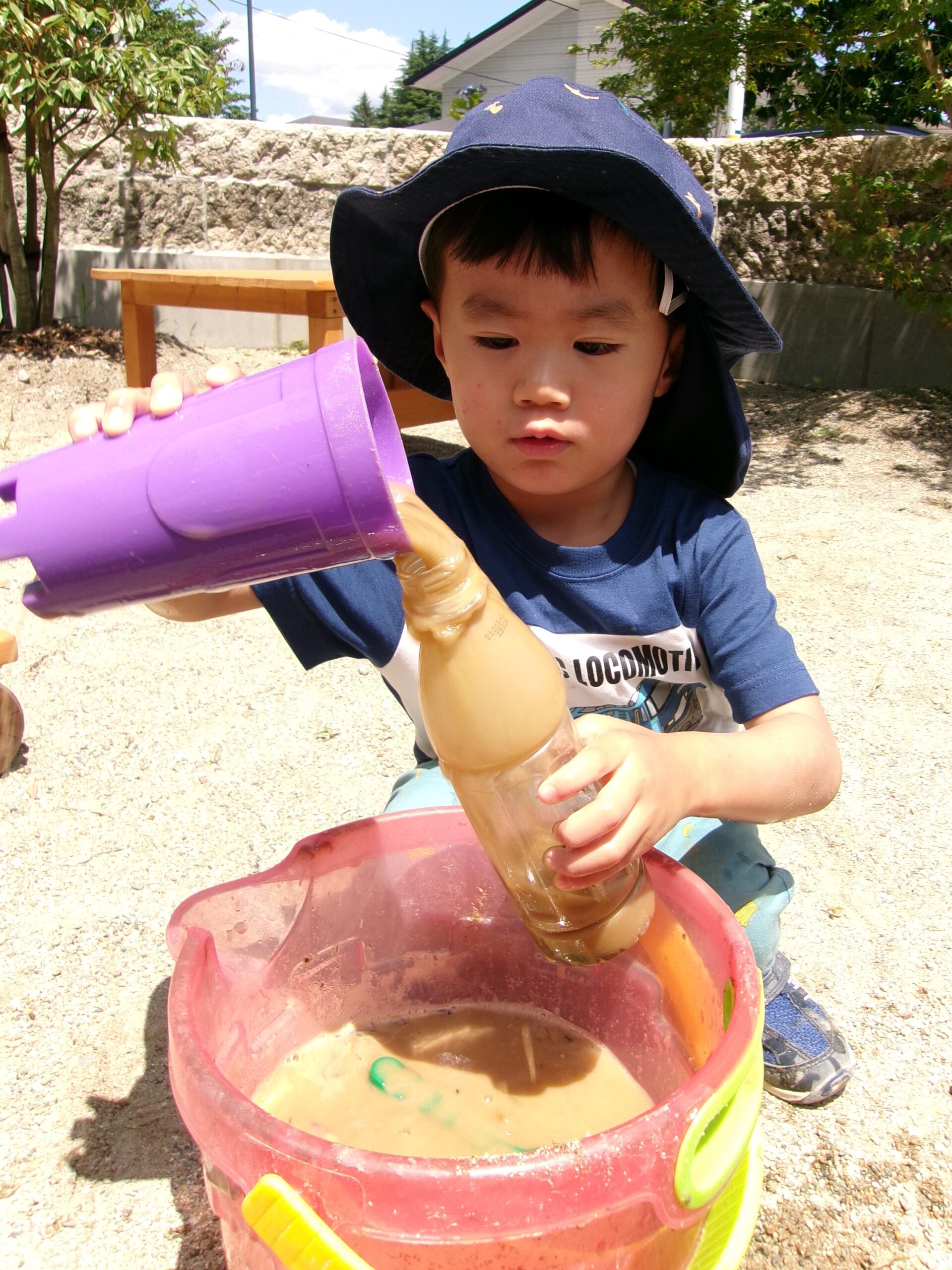 次はしっかりバケツを準備して!! 水と砂をグルグル混ぜて~、
